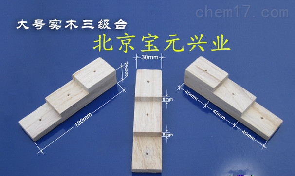 三级台可用一块木板做成长12cm、宽4cm、高2.4cm的三级台,*级高0.8cm,第二级高1.6cm,第三级高2.4cm,每一级中间有一个和5号昆虫针一样粗细的小孔,以便插针。三级台是用来针插标本的,它可以使所有制作的标本及其标签的高度统一。木质三级台